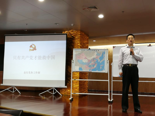 中國銀行總行黨務(wù)工作部副部長(zhǎng)王曄為參會(huì)人員講授了題為《只有共產(chǎn)黨才能救中國》的主題黨課。王曄副部長(zhǎng)從中國古代歷史出發(fā),運(yùn)用眾多歷史史實(shí)詳盡闡述了中國共產(chǎn)黨人的初心和中國共產(chǎn)黨的使命就是為中華民族謀復(fù)興、為中國人民謀幸福,進(jìn)而得出只有共產(chǎn)黨才能救中國的結(jié)論。整堂黨課主題鮮明、旁征博引,展現(xiàn)出一幅幅宏偉歷史畫卷,以真實(shí)生動(dòng)的事例再現(xiàn)了共產(chǎn)黨員對(duì)黨的信仰與忠誠,引發(fā)了參會(huì)人員的強(qiáng)烈共鳴。