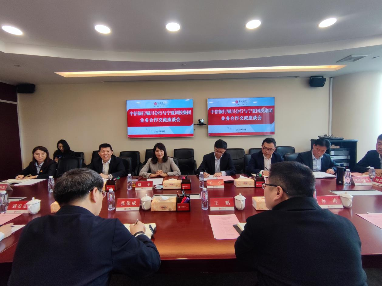 4月26日,寧夏國投集團與中信銀行銀川分行舉行業(yè)務(wù)合作交流座談會。集團公司黨委副書記、總經(jīng)理張保成帶隊參加。