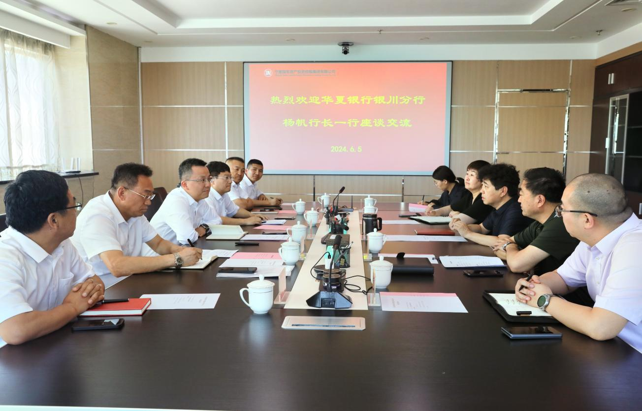 2024年6月5日,寧夏國投集團(tuán)黨委書記、董事長楊舵與來訪的華夏銀行銀川分行行長楊帆一行座談,雙方就銀企合作進(jìn)行了深入交流。寧夏國投集團(tuán)黨委副書記、工會主席郭聿維、副總經(jīng)理?xiàng)钷?、華夏銀行銀川分行副行長郭曉敏參加座談。