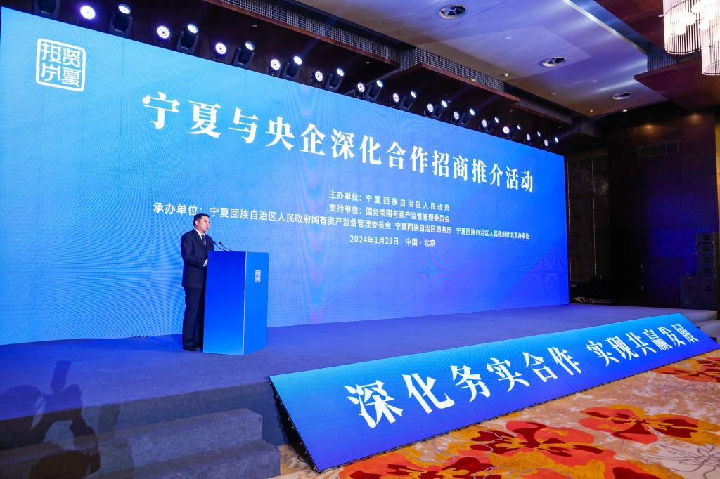 為接續(xù)精準(zhǔn)發(fā)力,以“招大引強(qiáng)”助推全區(qū)經(jīng)濟(jì)高質(zhì)量發(fā)展,通過推介會(huì)塑造投資寧夏招商品牌,1月29日上午,由自治區(qū)人民政府主辦,自治區(qū)國資委、商務(wù)廳、駐北京辦事處承辦的,以“深化務(wù)實(shí)合作 實(shí)現(xiàn)共贏發(fā)展”為主題的寧夏與央企深化合作招商推介活動(dòng)在北京舉辦?,F(xiàn)場(chǎng),全國48家央企110余位企業(yè)負(fù)責(zé)人在觀看《寧夏——祖國西部的一塊寶地》宣傳片后,我區(qū)各部門、各地市及寧東能源化工基地管委會(huì)圍繞營商環(huán)境、重大產(chǎn)業(yè)及擬合作領(lǐng)域重大項(xiàng)目等,在分別進(jìn)行推介的同時(shí),聯(lián)袂向央企發(fā)出“邀請(qǐng)”。