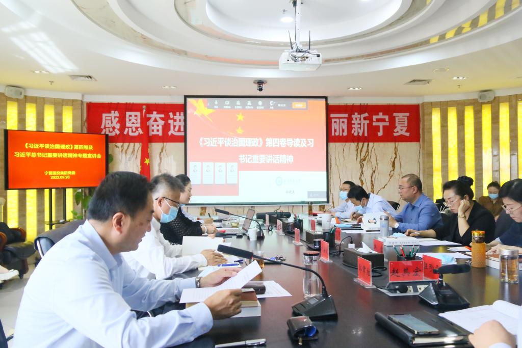 9月28日,寧夏國(guó)投集團(tuán)舉辦《習(xí)近平談治國(guó)理政》第四卷及習(xí)近平總書記重要講話精神專題宣講會(huì),邀請(qǐng)自治區(qū)宣講團(tuán)成員、北方民族大學(xué)黨委宣傳部副部長(zhǎng)徐曉美作專題宣講。會(huì)議以視頻形式舉辦,集團(tuán)本部及子企業(yè)90余名黨員聆聽宣講。