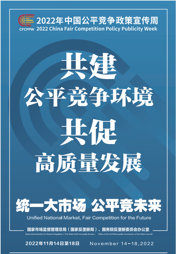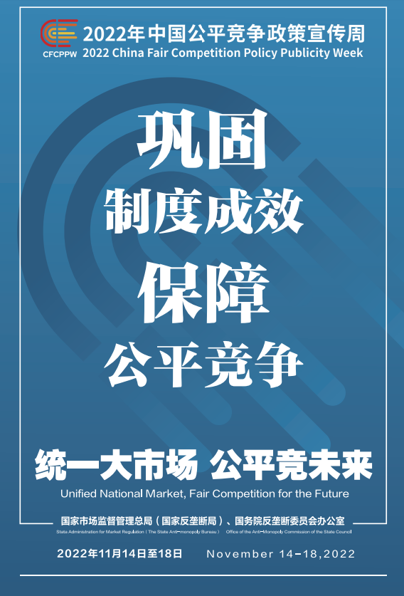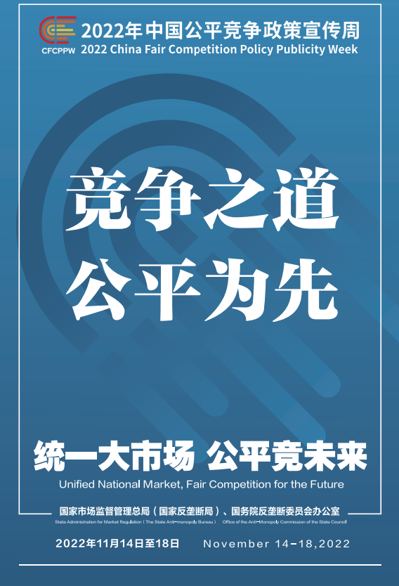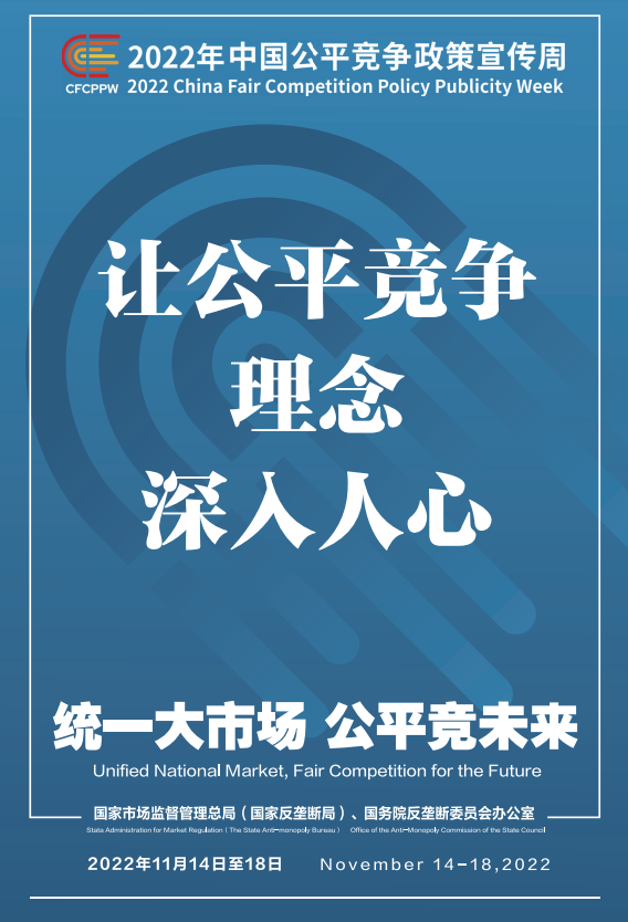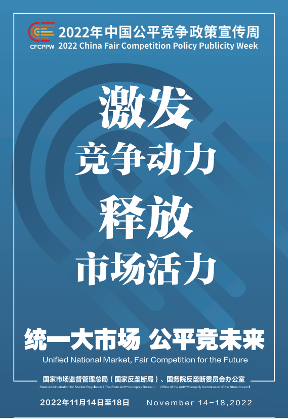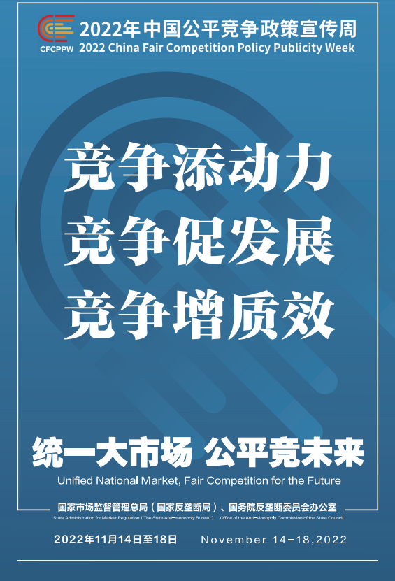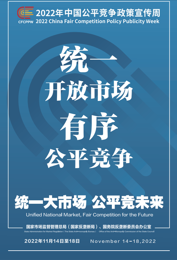 公平競爭是市場經(jīng)濟(jì)的內(nèi)在要求。為深入學(xué)習(xí)貫徹黨的二十大精神,落實黨中央、國務(wù)院決策部署,國家市場監(jiān)督管理總局(國家反壟斷局)、國務(wù)院反壟斷委員會辦公室會同有關(guān)部門和單位定于2022年11月14日至18日共同開展首屆中國公平競爭政策宣傳周活動,大力培育和弘揚公平競爭文化,營造有利于公平競爭的良好環(huán)境,促進(jìn)全國統(tǒng)一大市場建設(shè),推動高質(zhì)量發(fā)展。