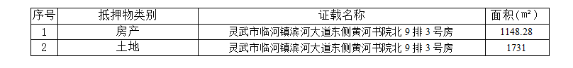 抵押物為靈武市臨河鎮(zhèn)濱河大道東側(cè)黃河書院的房屋,面積共計(jì)1148.28㎡,以及對(duì)應(yīng)的面積為1713㎡的土地,具體如下: