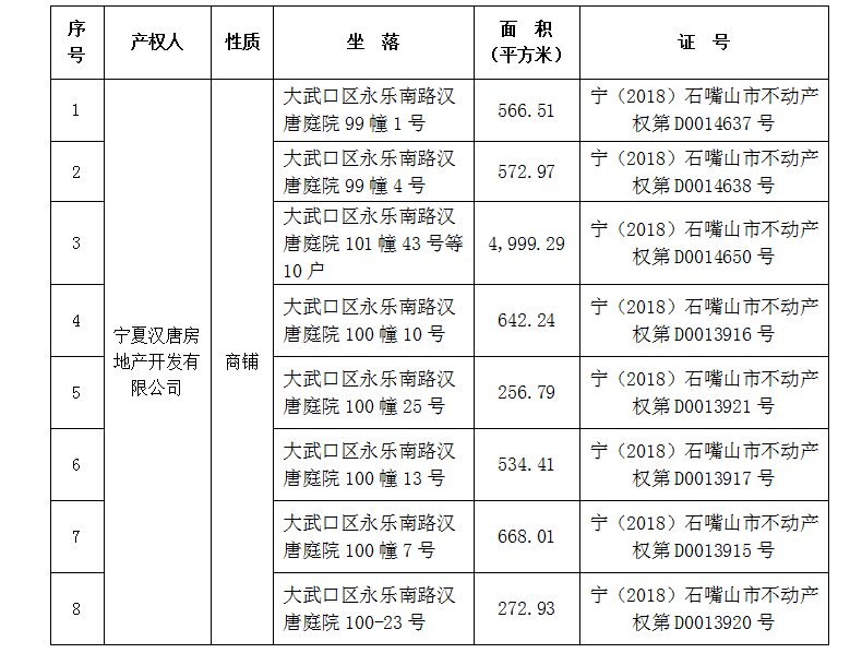 以上抵押物均為石嘴山市大武口區(qū)漢唐庭院的沿街商鋪,由于漢唐庭院小區(qū)整體入住率較高,有較好人流量。再加之九街商區(qū)的商業(yè)氛圍較為濃厚,該處商鋪的出租率較高,截止目前大部分商鋪的租期未到。