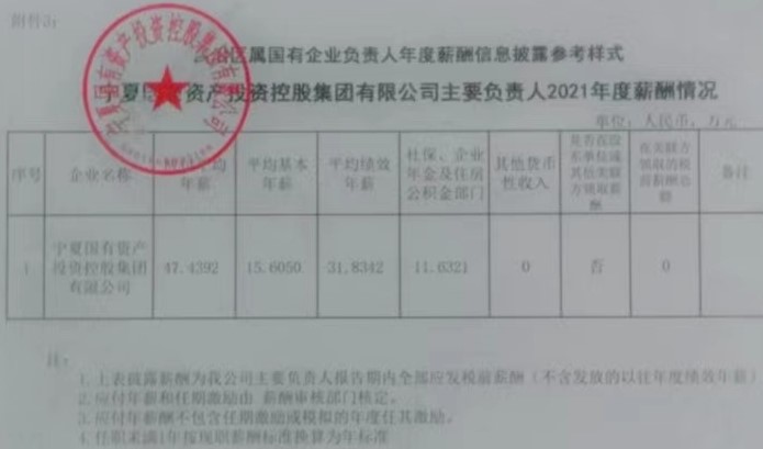 寧夏國(guó)有資產(chǎn)投資控股集團(tuán)有限公司主要負(fù)責(zé)人2021年度薪酬情況