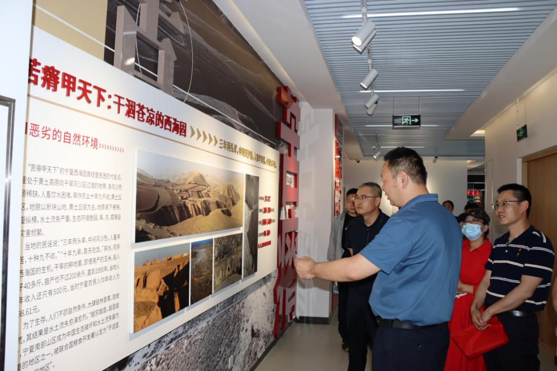 活動(dòng)中,全體黨員走進(jìn)閩寧鎮(zhèn)鎮(zhèn)史館系統(tǒng)了解了閩寧鎮(zhèn)發(fā)展歷程簡(jiǎn)介,通過鮮活生動(dòng)的圖片和承載時(shí)代記憶的展品,回顧了1997年以來閩寧兩省區(qū)開展對(duì)口扶貧協(xié)作的發(fā)展歷程和移民前寧夏貧困山區(qū)群眾的生存困境,了解到在黨中央作出東西部結(jié)對(duì)幫扶的戰(zhàn)略部署下,閩寧鎮(zhèn)移民群眾通過勤奮勞作,從昔日“干沙灘”到今朝“金沙灘”的歷史蛻變,深刻了解了在習(xí)近平總書記的親切關(guān)懷、指導(dǎo)和推動(dòng)下,遠(yuǎn)隔千山萬水的閩寧兩省區(qū)建立對(duì)口協(xié)作的輝煌成就,譜寫了一曲“武夷山六盤山山山相連,閩江水黃河水水水相融”的壯美贊歌,這既是兩省區(qū)友誼的象征,更是中國特色社會(huì)主義制度優(yōu)越性的生動(dòng)體現(xiàn)。