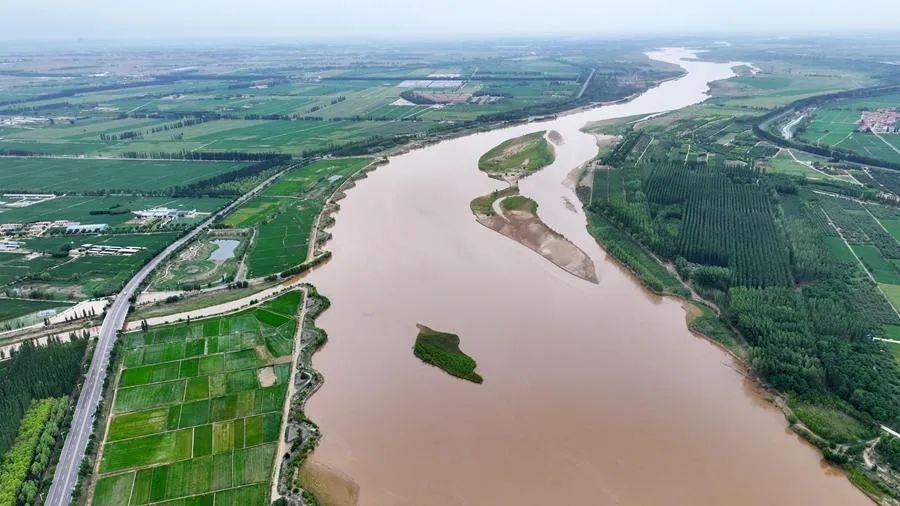 這是2024年6月13日拍攝的黃河寧夏段(無人機(jī)照片)。新華社記者 王鵬 攝