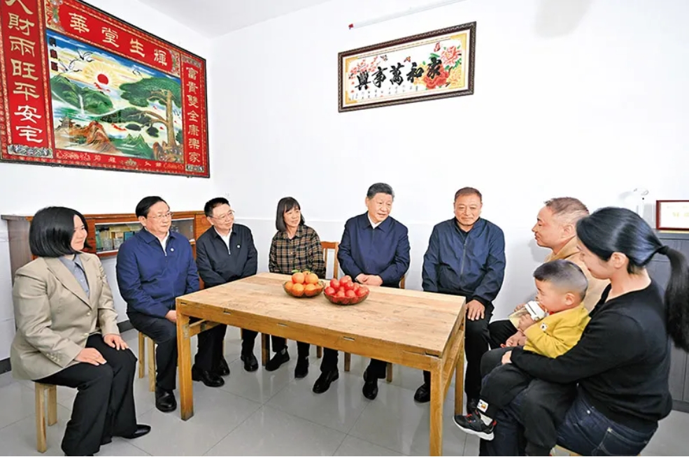 2024年11月4日至6日,中共中央總書記、國家主席、中央軍委主席習近平在湖北考察。這是5日上午,習近平在咸寧市嘉魚縣潘家灣鎮(zhèn)四邑村村民熊成龍家,同一家人圍坐在一起拉家常。新華社記者 燕雁/攝