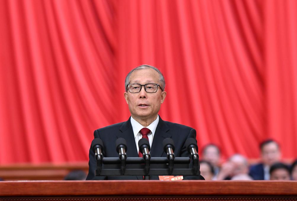 ??3月5日上午,第十四屆全國人民代表大會(huì)第三次會(huì)議在北京人民大會(huì)堂開幕。受全國人大常委會(huì)委托,全國人大常委會(huì)副委員長李鴻忠作關(guān)于全國人民代表大會(huì)和地方各級(jí)人民代表大會(huì)代表法修正草案的說明。新華社記者 張領(lǐng) 攝