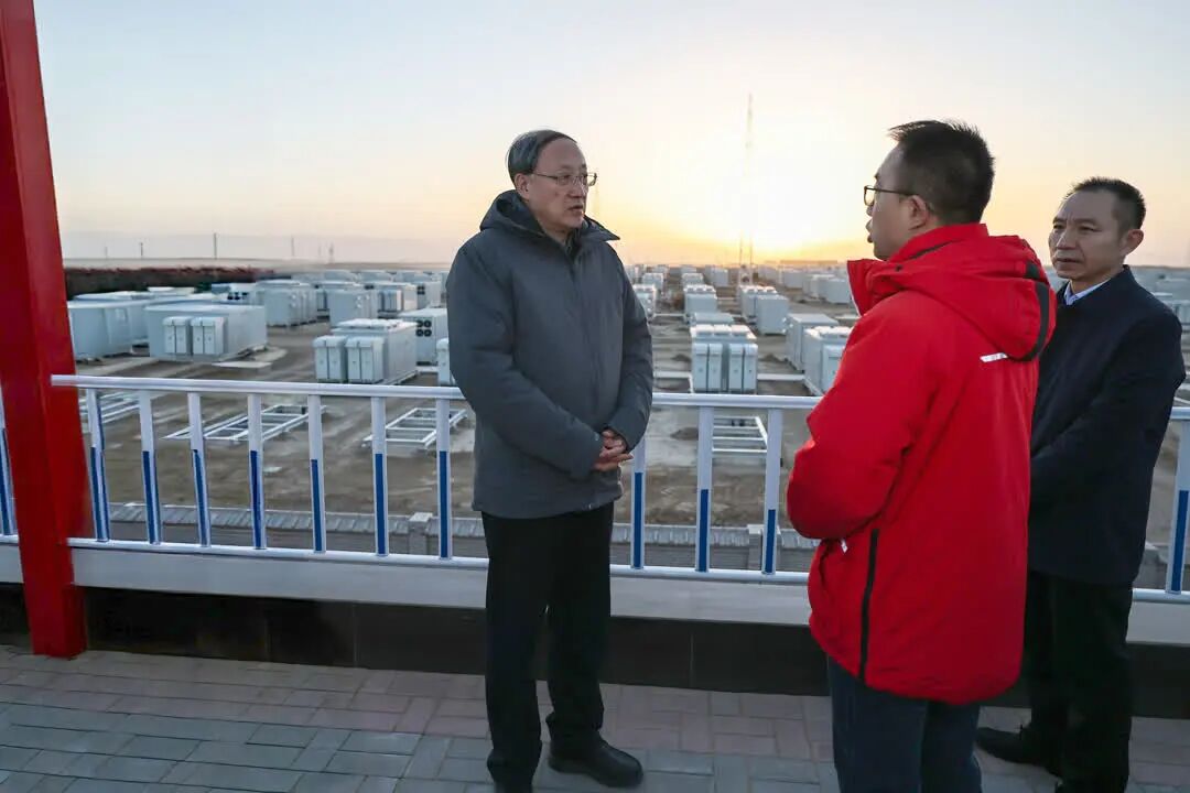 李邑飛在同心縣石獅鎮(zhèn),調(diào)研新型鎳氫混合共享儲能示范項目建設(shè)情況。