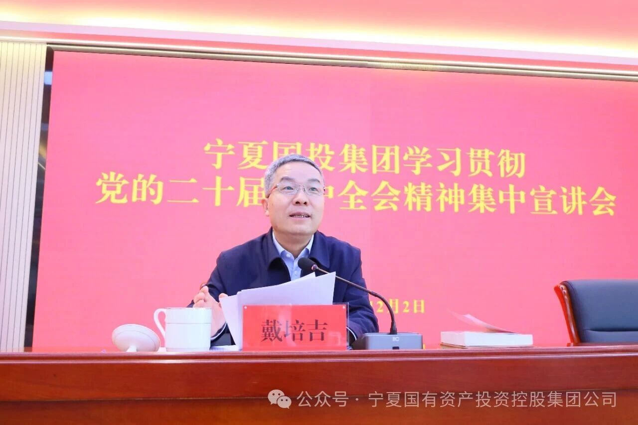 為推動(dòng)學(xué)習(xí)貫徹黨的二十屆四中全會(huì)精神走深走實(shí),12月2日,寧夏國(guó)投集團(tuán)召開(kāi)學(xué)習(xí)貫徹黨的二十屆四中全會(huì)精神專題宣講會(huì)。自治區(qū)宣講團(tuán)成員、自治區(qū)商務(wù)廳黨組書(shū)記、廳長(zhǎng)戴培吉作專題宣講。集團(tuán)公司黨委書(shū)記、董事長(zhǎng)楊舵主持會(huì)議。